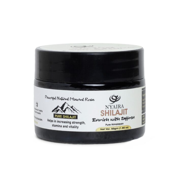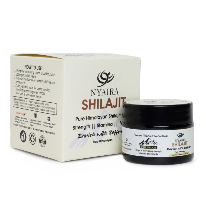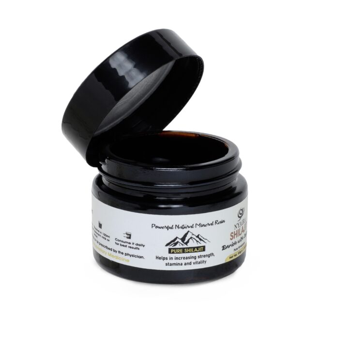 Premium Quality Pure Shilajit Resin Form by Nyaira Ayurveda is sourced on a global level from high altitude mountain ranges. Shilajit is a natural tar-like substance to revitalize the mind and body.Resin is the purest form of Shilajit, with endless benefits. Nyaira Shilajit is naturally rich in more than 85 minerals and nutrients such as Magnesium and Urolithin A. It is a powerhouse of health benefits such as better energy and stamina levels along with overall vitality.Simply take a pea sized shilajit resin and dissolve it in 100-200 ml of lukewarm water or milk, stir it and enjoy the refreshing drink that fuels your day.